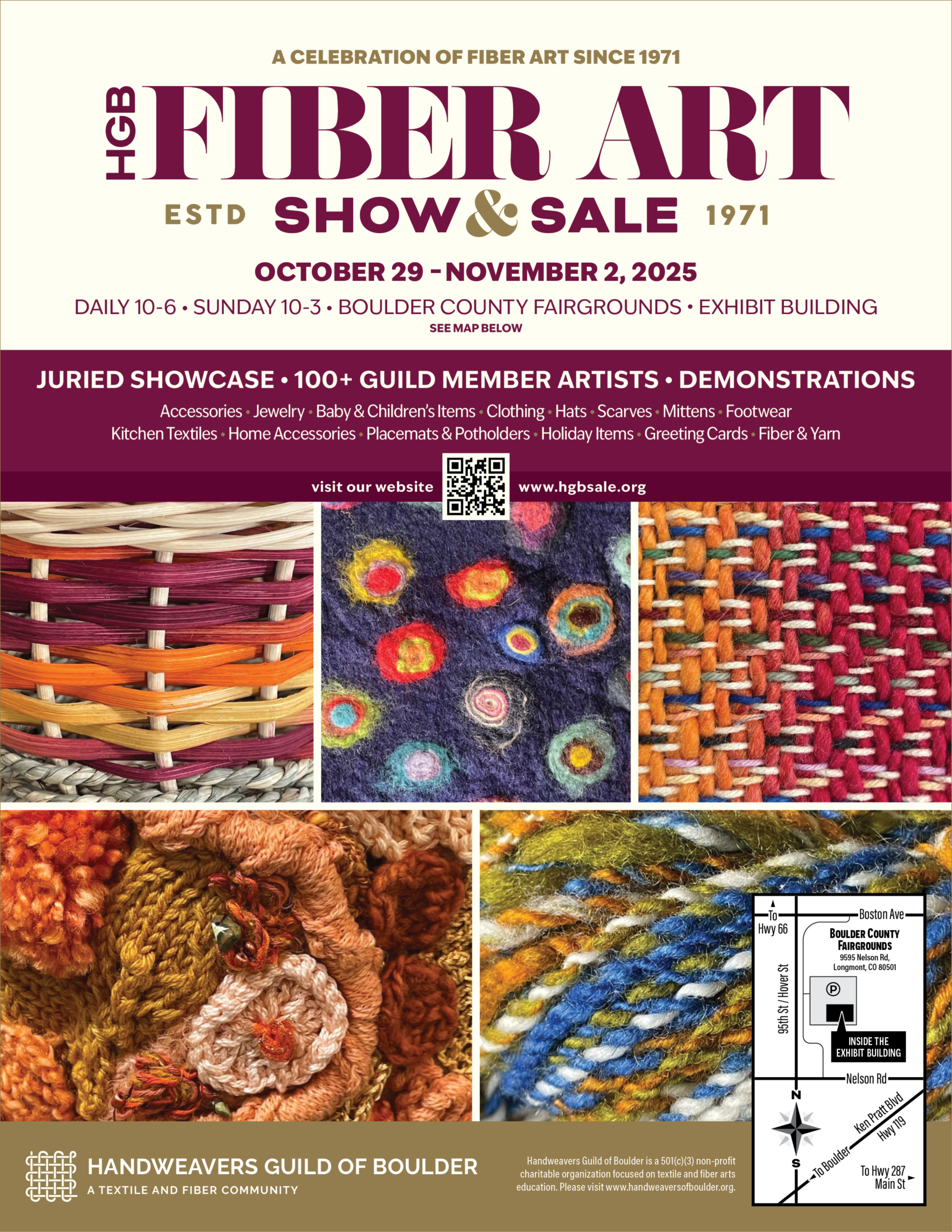 The Handweavers Guild of Boulder began producing an annual event in 1971 and the Show & Sale has evolved through the years into the premier fiber art event it is today.